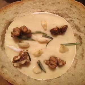Meglehetősen hasonlít közeli rokonára, a camembert bundában elnevezésű leveles tésztás sajtra. Ha az bunda, akkor ez kabát. Egy kicsit gyorsabb elkészíteni, és a közösségi tunkolás miatt kapcsolatibb étel. Nem bonyolult, csak veszel egy kb. negyed kilós cipót, levágod a tetejét, az alját kivájod. Az így keletkezett lyukban elhelyezel oly módon egy camembert, hogy előtte vékonyan levágod a tetejét, beleteszed a cipó-gödörbe, majd ráteszed a sajtot, késsel megböködöd. Az így keletkezett lyukakba diót és negyedekbe vágott (hosszában vágjad) fokhagyma gerezdeket tuszkolsz, megszórod pár levél rozmaringgal. (Elvetemült fokhagymarajongók a sajt köré is dugdoshatnak gerezdeket.) Ráhelyezed a tetejét, és beteszed kb. fél órára a közepes lángra kapcsolt sütőbe. A megolvadt sajtot a megsült cipóval kell tunkolni.